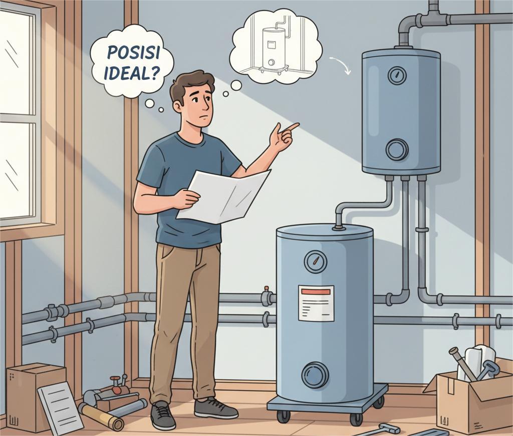 - Jarak ideal ke titik penggunaan maksimal 3–5 meter agar panas tidak banyak terbuang.
