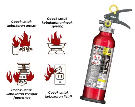 Dibandingkan dengan tipe komersial, alat pemadam api rumah tangga umumnya lebih ringan dan berukuran lebih kecil, sehingga lebih mudah digunakan oleh perempuan maupun lansia. Oleh karena itu, selain memasang alat pemadam utama sesuai ketentuan, disarankan untuk menambahkan alat pemadam tipe rumah tangga di area yang berisiko, seperti dapur atau di sekitar stop kontak listrik, sebagai langkah pencegahan tambahan. |