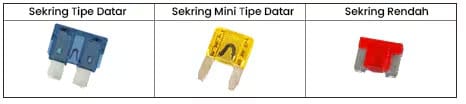 Setiap jenis sekring memiliki bentuk dan kapasitas arus (ampere) yang berbeda, sehingga harus dipilih sesuai dengan spesifikasi kendaraan dan perangkat listrik yang digunakan.