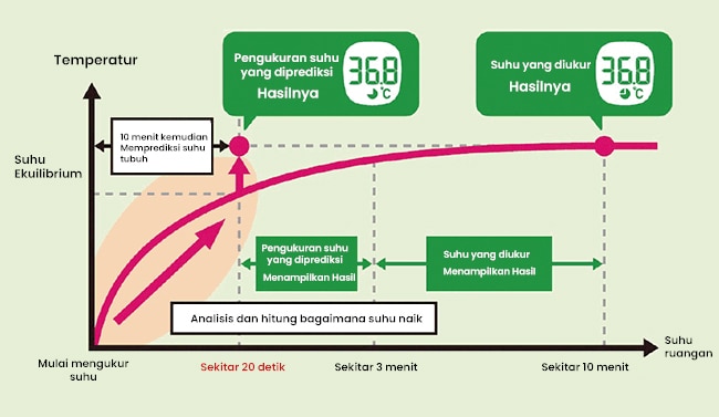 Mungkin Anda pernah mengalami situasi di mana Anda mengukur suhu tubuh dengan menyisipkan termometer ke ketiak dan dalam waktu singkat mendengar suara "bip" yang menandakan pengukuran telah selesai. Sebenarnya, sebagian besar termometer yang beredar saat ini adalah termometer prediktif. Meskipun memiliki keunggulan dalam waktu pengukuran yang singkat, namun sebaliknya, suhu yang ditampilkan setelah pengukuran hanyalah "prediksi." Oleh karena itu, perlu diingat bahwa dapat terjadi kesalahan dalam suhu dibandingkan dengan termometer aktual, dan suhu tubuh dapat berubah setelah pengukuran, sehingga perlu diperhatikan dengan baik