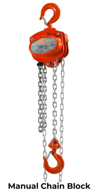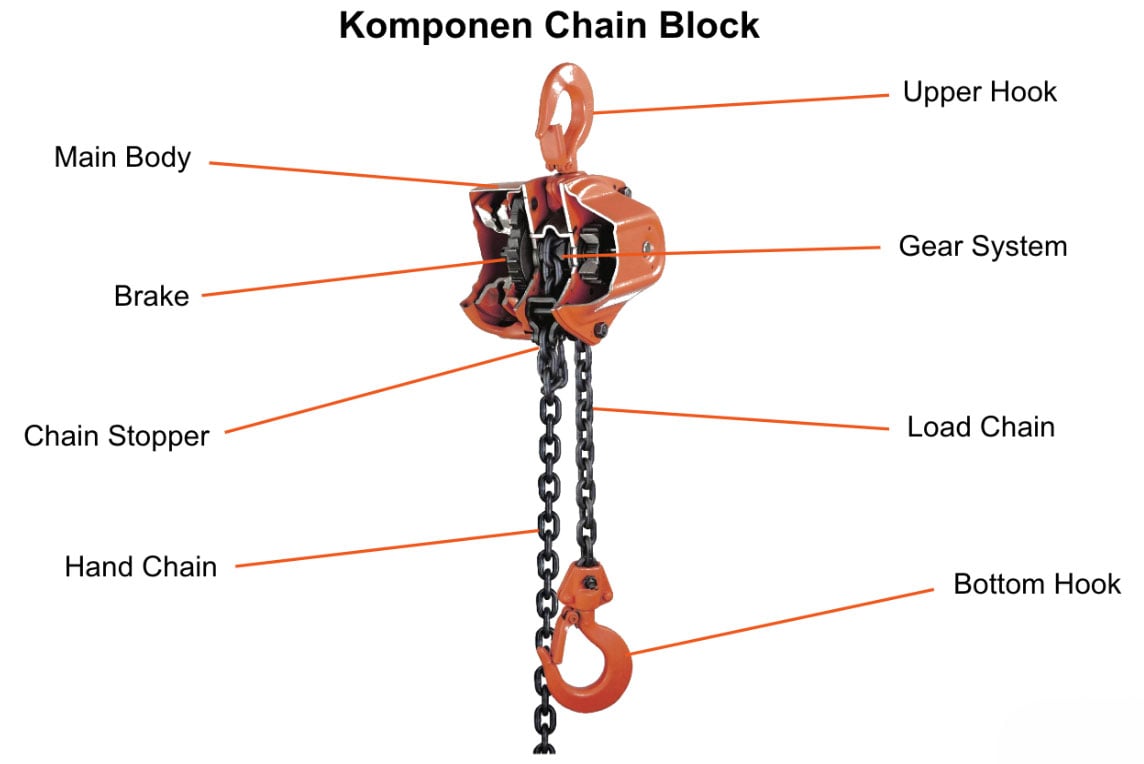 Manual chain block adalah alat mekanis yang digunakan untuk mengangkat beban berat. Komponen chain block terdiri dari body, load chain, hand chain, brake dan hook. Alat ini bekerja dengan prinsip katrol dan rantai, sehingga pengguna dapat mengangkat barang yang berat dengan tenaga yang minimal, dengan cara menarik rantai sehingga mekanisme katrol akan mengangkat beban yang dikaitkan dalam hook. Perlu diperhatikan alat ini memiliki daya angkat atau tonase sesuai kebutuhan penggunanya. Dengan banyaknya keunggulan alat ini, chain block banyak digunakan dalam industri seperti konstruksi, manufaktur, dan pergudangan.