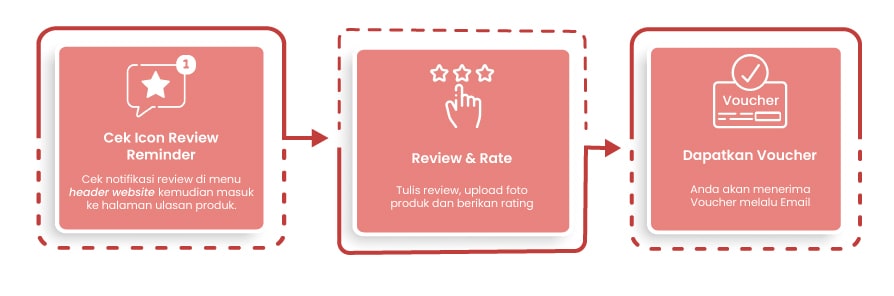 - 03 Voucher berupa potongan senilai Rp50.000 untuk ulasan tanpa foto atau senilai Rp75.000 untuk ulasan dengan foto.